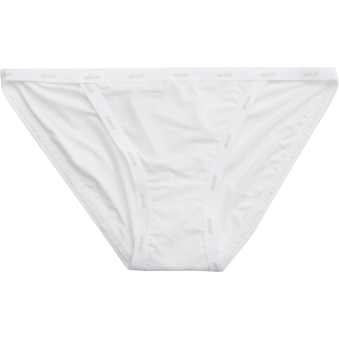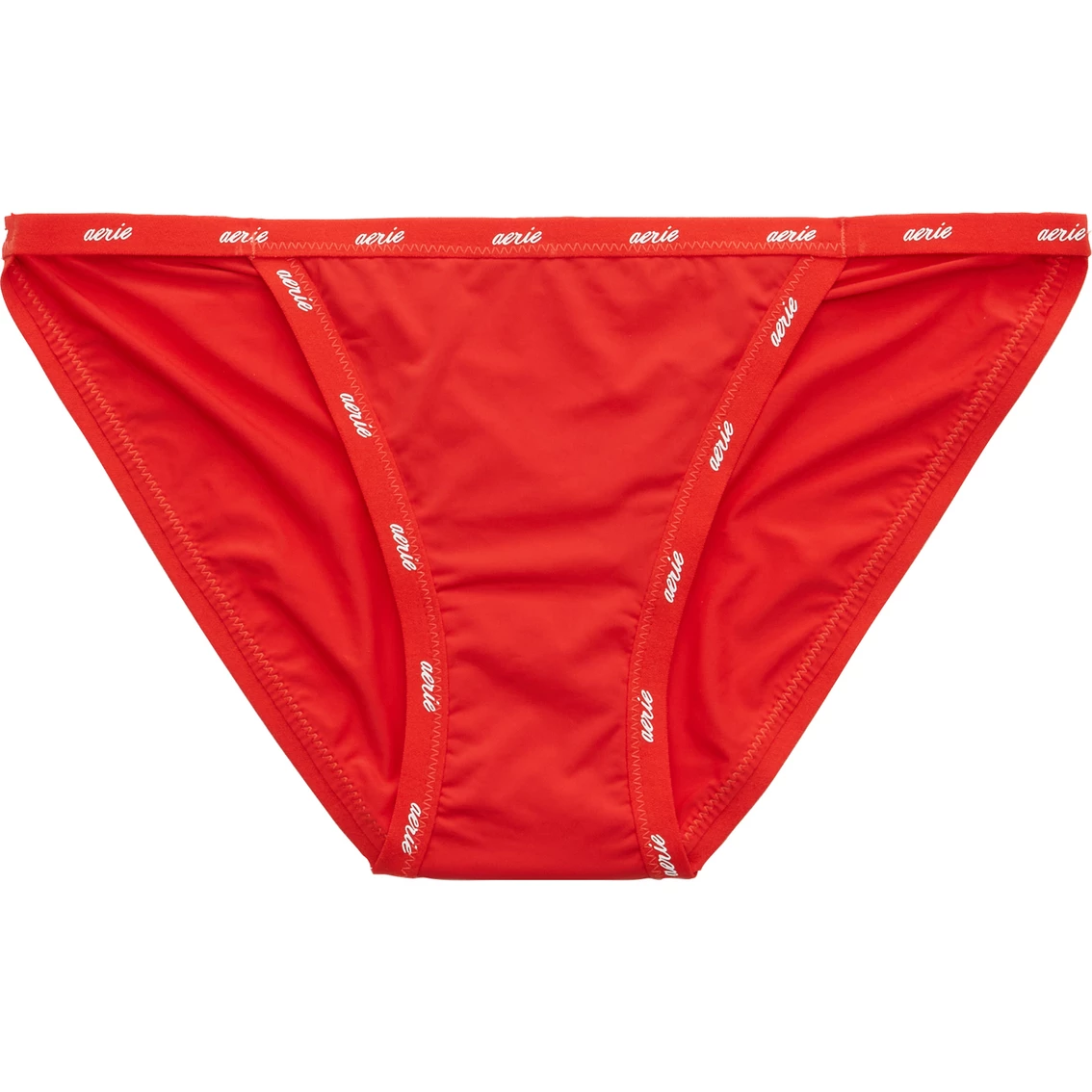 The newest fabric from Aerie is lightweight and so-darn-soft…you’ll feel like you’re floating. Let’s take this comfy all the way to the moon! Float in their smoothest fabric yet. With a trendy string silhouette, rep your Aerie! Bikini underwear features logo deets. Style: 67747298.