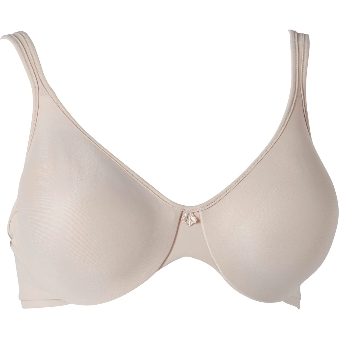 This Bali Full Figure Passion for Comfort Bra features molded cups, a silky smooth lining and inner side slings for support. The cushioned adjustable straps help ensure comfort. It has an encased underwire and a back hook-and-eye closure. Machine washable. Style: 3383.