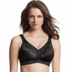 The active Magic Lift Active Support Bra from Glamorise is perfect for the woman on the go and includes all of the features Glamorise bras are known for, including an inner, cushioned band for incredible bust support and great shape, all without a wire. The cool, cotton-blend cup fabric wicks away moisture while cushioned, adjustable straps pamper your shoulders. The two-way-stretch back moves with you and at the same time keeps straps securely in place. Style: 1005CF.
