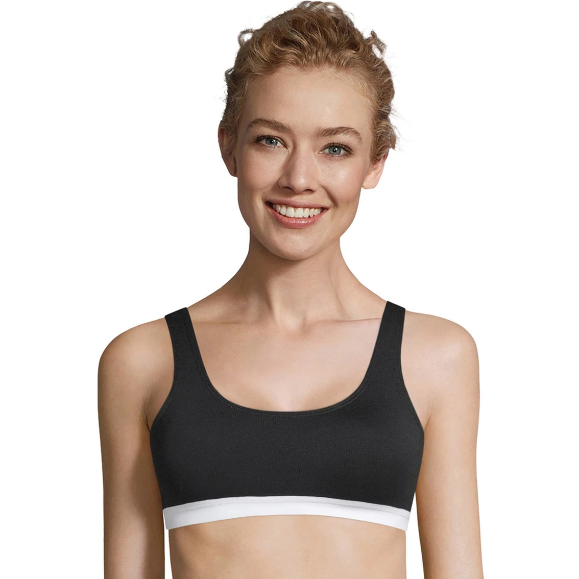 These pretty cotton stretch bras from Hanes are versatile for all occasions. This bra will be a wardrobe staple thanks to a clean, modern front neckline; a deep, open scoop back for a modern look; an inner lining for support; 2-ply cups for shaping; an elastic comfort band designed to stay in place; and cotton stretch comfort. Style: MHH559A07.