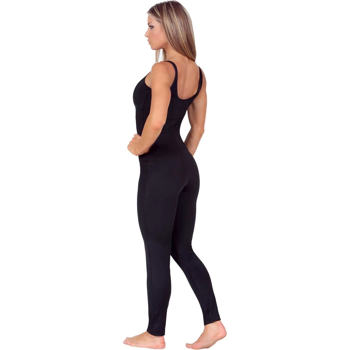 This InstantFigure Full-Length Bodysuit is designed to smooth and accentuate your natural curves. Slims and smooths waist, hips and thighs; flattens tummy: offers core, back and posture support. Pull-on design with tapered leg makes this the perfect discreet base piece or pair with your favorite jacket and shoes for an instant outfit. Single layer fabric is breathable and discreet under clothing. The 4-way stretch Nylon/Spandex fabric is non-restricting allowing you to move freely. Easy wear, easy care. Machine washable. Made in the USA. Style: WB40231.