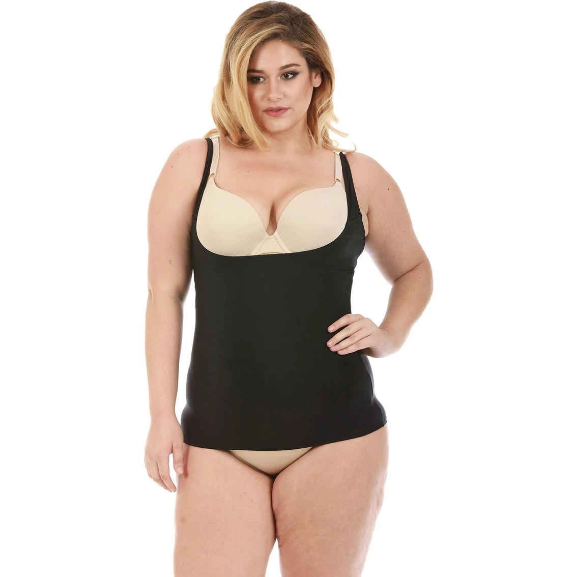 InstantFigure underbust compression tank with multiple slimming and smoothing zones. Slim and smooth your tummy, torso, and back. Offers core, back, and posture support. Underbust style allows you to wear your favorite bra and offers lift and support while smoothing bra and back bulge. Perfect for low necklines. Single layer fabric is breathable and discreet under clothing, 4-way stretch nylon/spandex fabric is non-restricting allowing you to move freely. Easy wear, easy care. Style: WT40041.