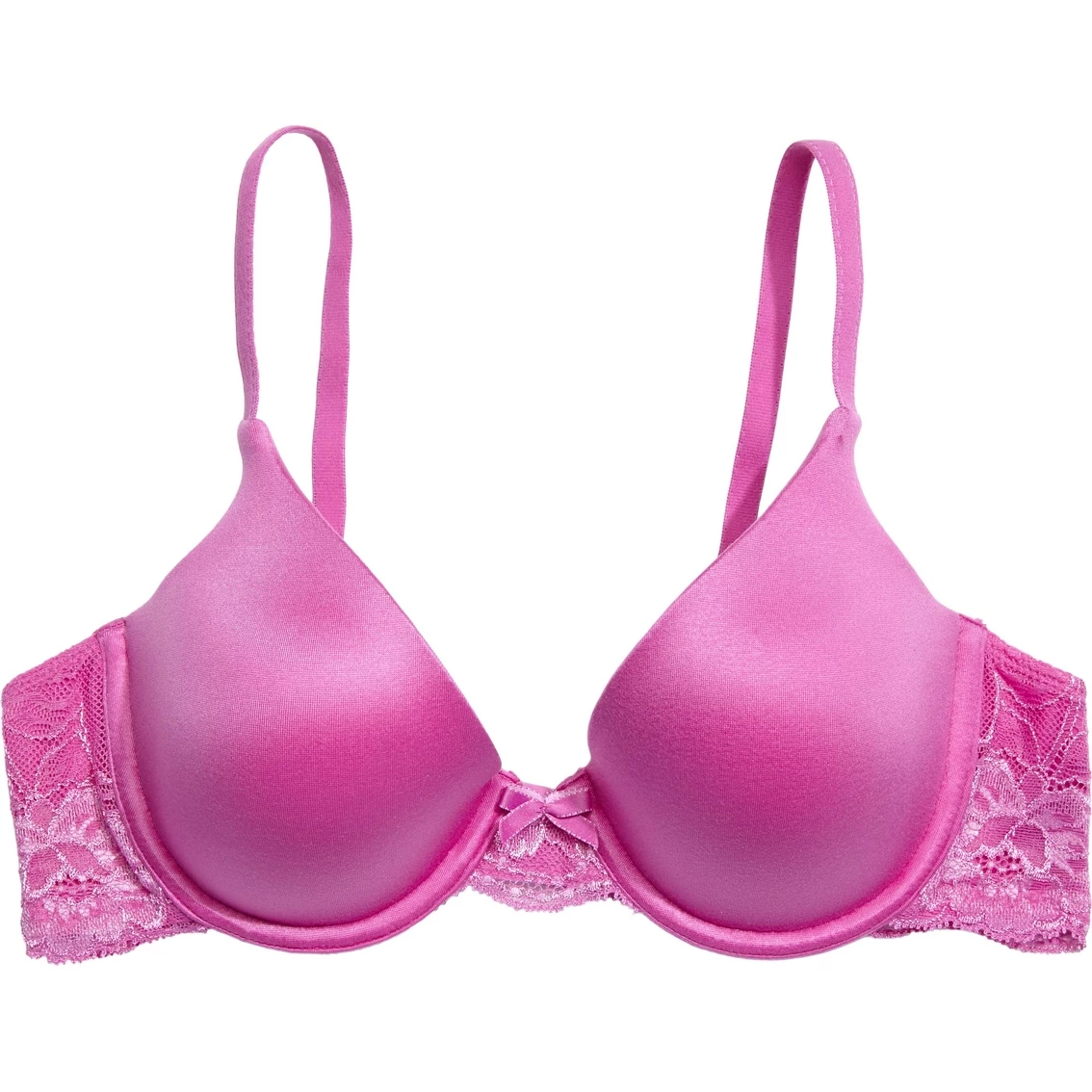 The Maidenform Comfort Devotion Embellished Demi Bra redefines comfort with superior soft fabrics and unparalleled support. Features include gorgeous soft lace embellishments and superior lined no-show cloud foam cups for added comfort and support. This underwire bra also has incredibly soft back-smoothing wing for a smooth look under clothes and leotard back for stay-put strap support and comfort. Style: 9441.