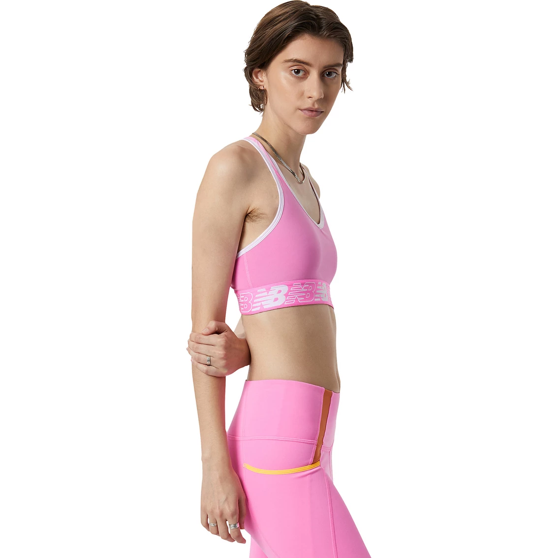 With stabilized front straps to help minimize vertical movement, the New Balance Pace Bra 3.0 is perfect for medium impact activities. Pull on this favorite sports bra for cycling, hiking, running or boxing. Features a supportive bottom band elastic with an eye-catching, refreshed logo design helps to keep everything in place. Style: WB11034VPK.