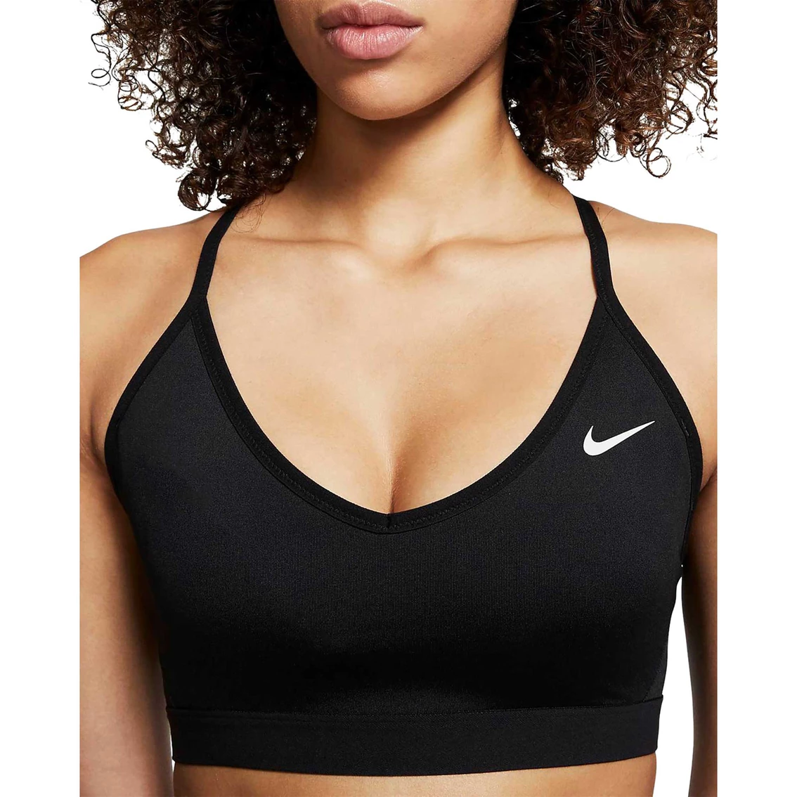 Lightweight softness that’s better than braless. When you feel like wearing nothing, but need a little something, reach for the Nike Indy Sports Bra. It offers light support during low-impact, high-energy workouts such as Pilates, barre and yoga. The low-cut design and thin, adjustable straps provide feminine detail while the back mesh panel offers breathability. Super-soft, fast-drying fabric gives all-day comfort. The mesh back panel offers cooling where it counts. Adjustable, low-profile elastic straps let you customize the fit. Dri-FIT technology helps keep you dry and comfortable. Pads provide light support and natural definition. Style: 878614.